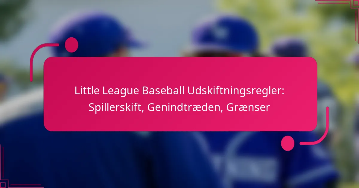 Reglerne for udskiftninger i Little League Baseball beskriver procedurerne for spillerændringer, herunder genindtræden og begrænsninger på udskiftninger. Disse retningslinjer er essentielle for at sikre fair play og opretholde spillets flow, hvilket gør det vigtigt for trænere og spillere at forstå dem grundigt.